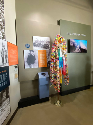You will find a display at Pearl Harbor that houses a tiny folded paper crane. This crane was folded by a Japanese girl named Sadako Sasaki. She survived the atomic bombing of Hiroshima. While she survived the explosion, ten years after the bomb, she developed leukemia. While in the hospital, she began folding 1,000 paper cranes believing that doing so would grant her a wish. She managed to fold 1,400 before succumbing to leukemia at the age of twelve. Her crane folding caught the attention of many people, and Sadako became a symbol of people affected by the atomic bomb and the hope for world peace. The crane at Pearl Harbor was donated by her family as a symbol of peace.
