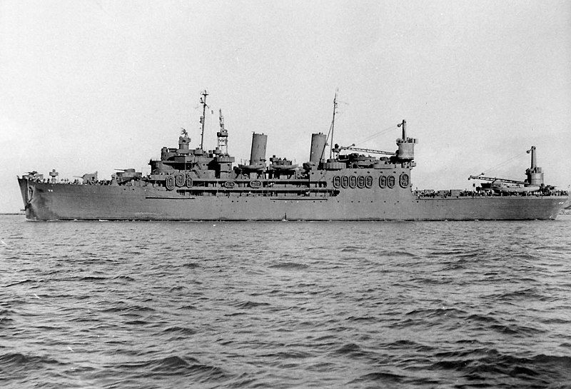 Broadside view of the U.S. Navy seaplane tender USS Curtiss (AV-4) off the Mare Island Naval Shipyard, California (USA), on 31 October 1945., USN, Official U.S. Navy Mare Island Naval Shipyard photograph AV 4 6885-45, PD-USGov