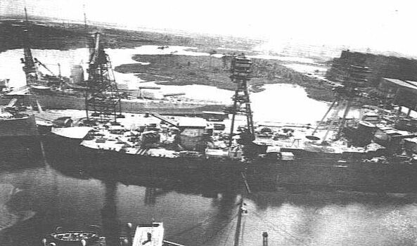 The U.S. Navy battleship USS Arizona (BB-39) at the Norfolk Naval Shipyard, Virginia (USA), on 3 June 1930. The battleship was one of several worked on here during the Battleship Modernization Program in the 1930s. In the photograph, the ship’s superstructure has been removed and new masts have been installed., USN, Official U.S. Navy photo [1] from the U.S. Navy Norfolk Naval Shipyard, PD-USGov