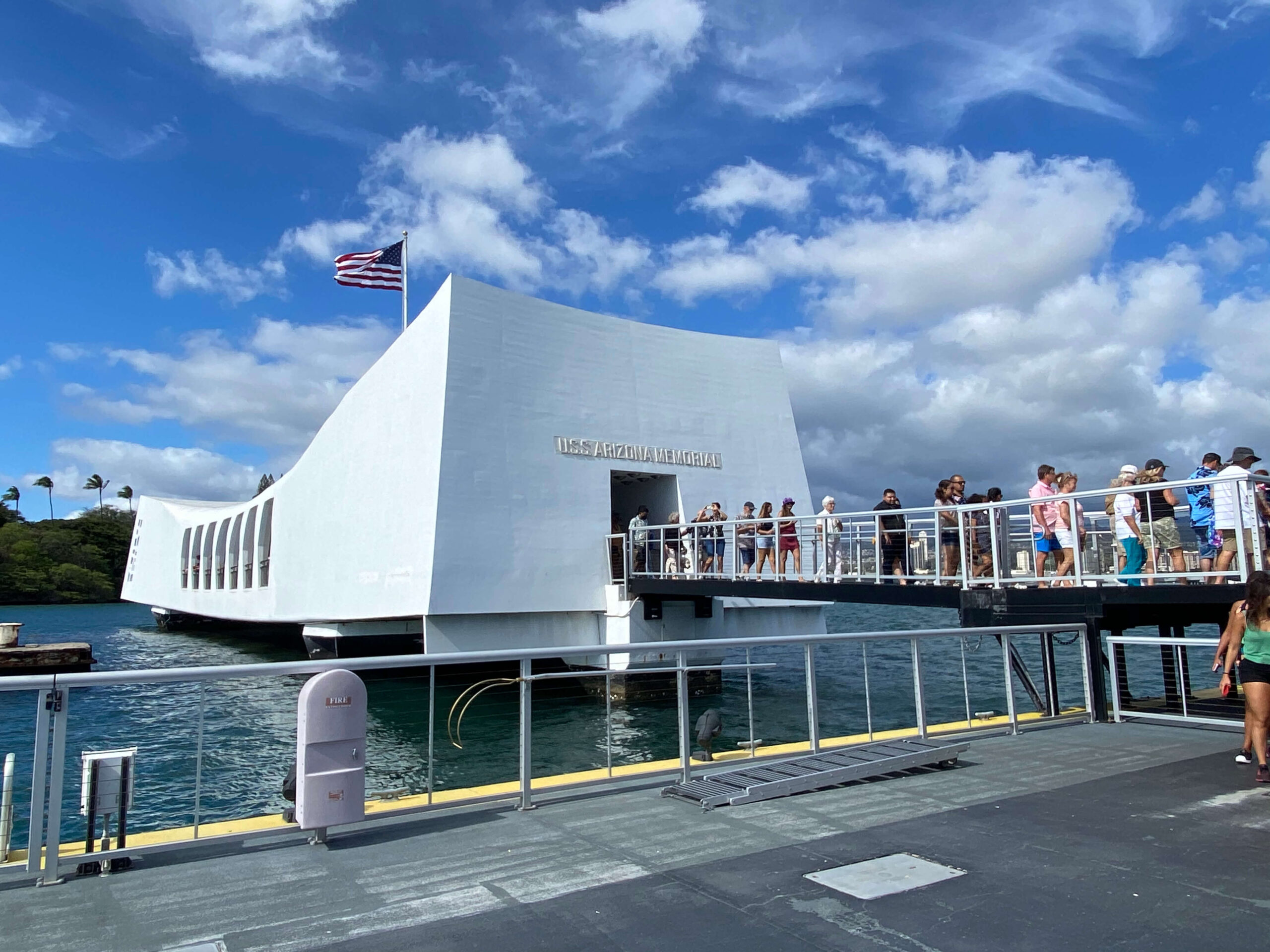 Visitors entering the Arizona Memorial Monument. Thousands of people visit the Pearl Harbor National Memorial each day.