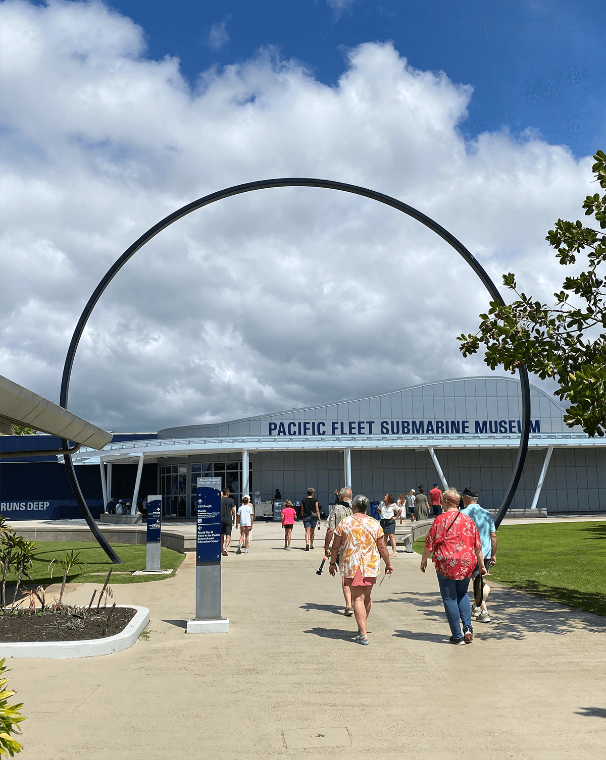 A view from the entrance to the Pearl Harbor National Memorial Visitor Center. Much has changed from when the Pearl Harbor Visitor Center was first opened in 1980.