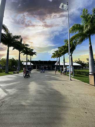 When you arrive at Pearl Harbor, the first thing you see is the Pearl Harbor National Memorial Visitor’s Center. This is the central hub for any activity going on at Pearl Harbor. Before you enter, to your right is the bag storage area. Be aware that no bags are allowed in the visitor’s center. If you have any bags with you, they will have to be checked in at the bag storage. There is almost always a line, and in addition, there is a fee of $6 per bag and $10 per suitcase for storage.