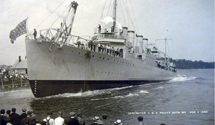 Launching of USS Pruitt (DD-347) on 2 August 1920 at Bath Iron Works, Maine (USA)., U.S. Navy: The original uploader was ScottyBoy900Q at English Wikipedia., 2005-08-27 (original upload date), U.S. Navy photo [1] available on Navsource.org, PD-USGov