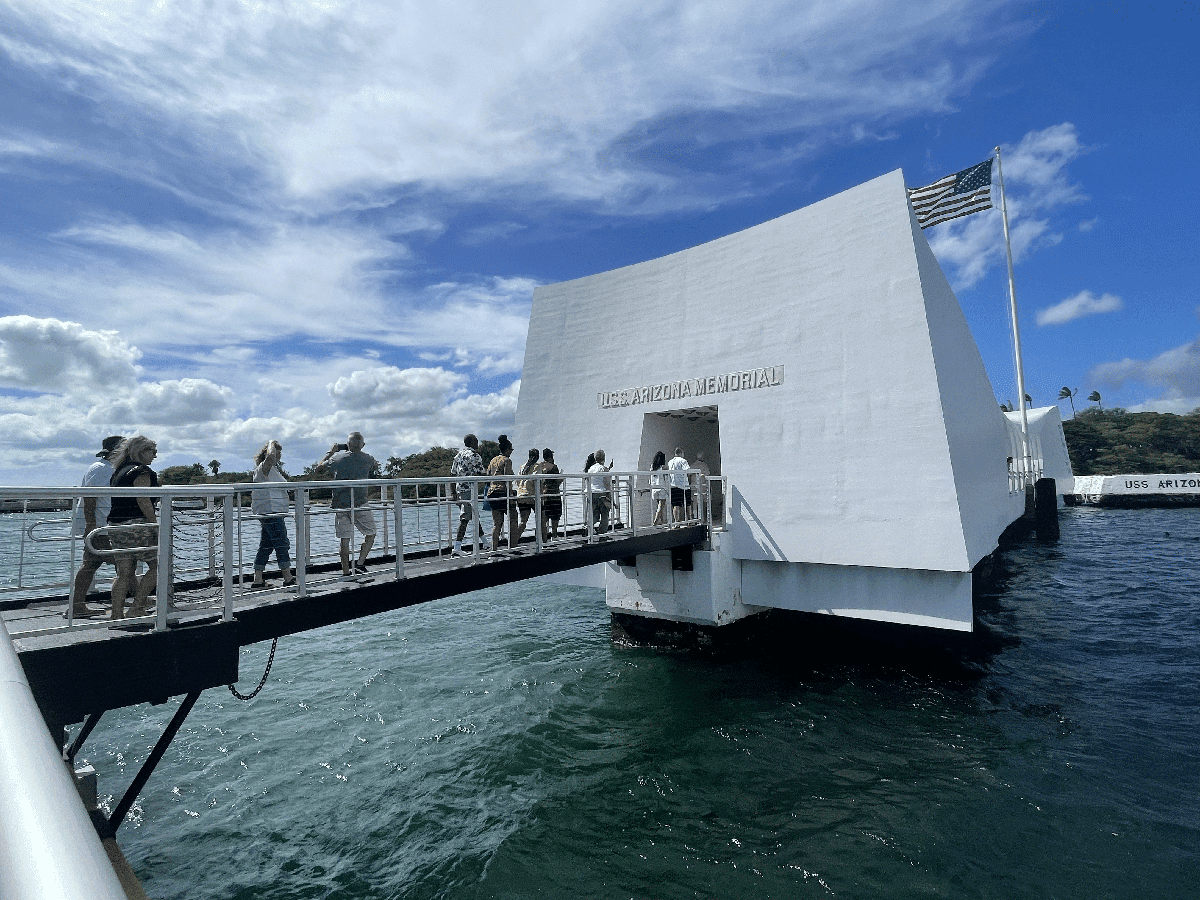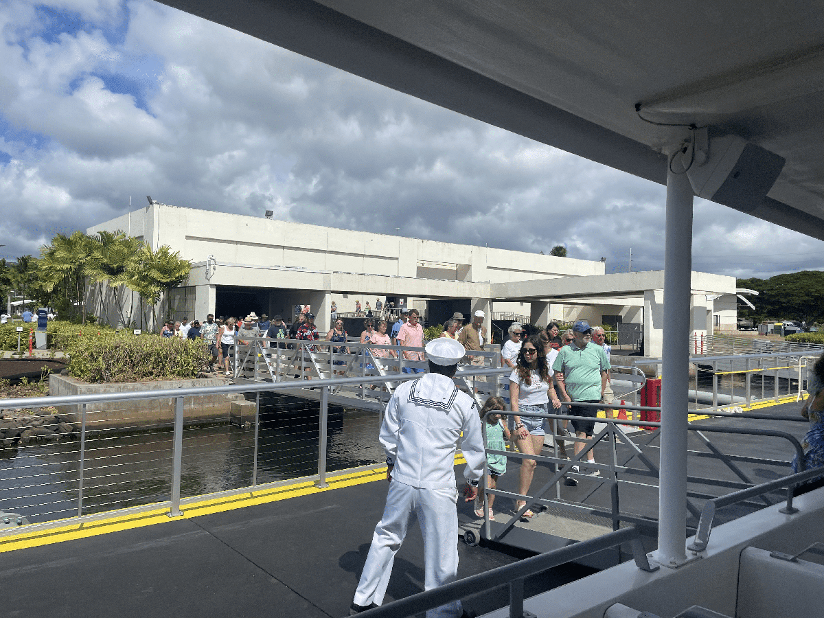 After the film is completed, passengers head to the US Navy shuttle bound for the USS Arizona Memorial monument.