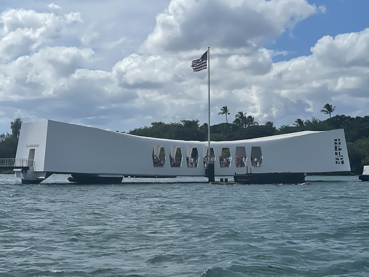 The Arizona Memorial Monument at Pearl Harbor.